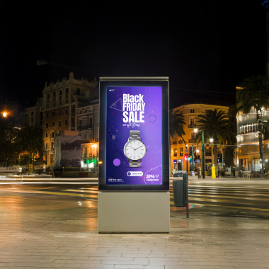 Installation is simple and tool-free. We offer several accessories to facilitate mounting, including metal grommets, pole pockets, adhesive tabs depending on your specific ad space.