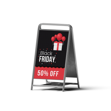 information, A-frame signs offer a dual-sided display for double the visibility. Designed for portability, these